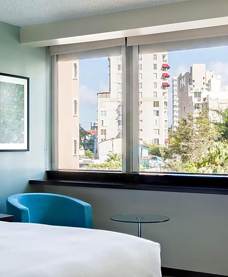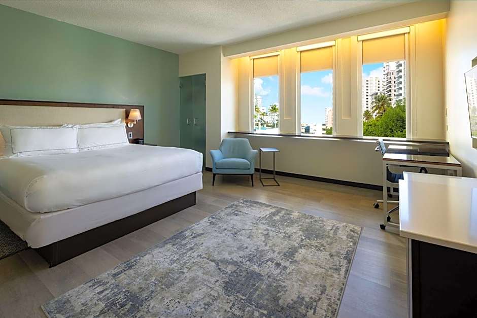 This stylish room features a queen-size bed. It includes a flat-screen TV, large work area and free high-speed internet access.